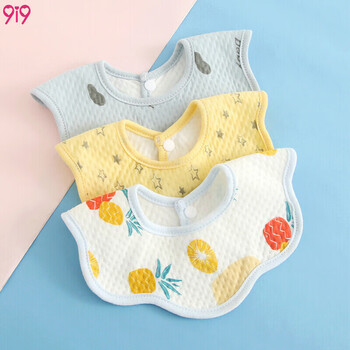 9i9婴儿围嘴防水口水巾纯棉表层宝宝可旋转饭兜3条颜色随机A438
