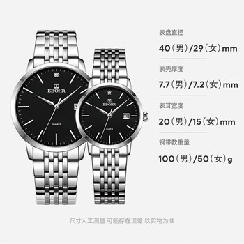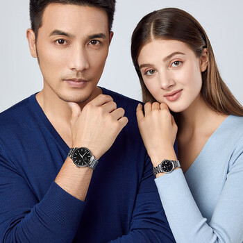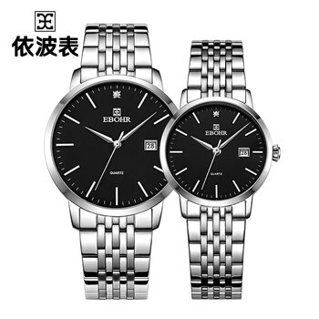 依波(EBOHR)手表 大师系列黑面石英男女情侣对表礼盒50290413/0420节日礼物