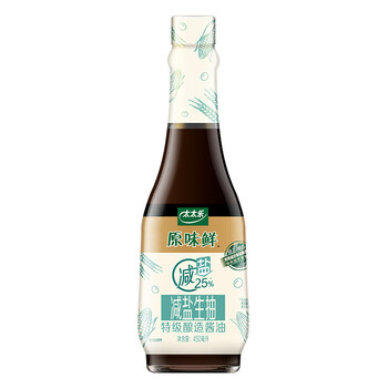 太太乐减盐生抽酱油 原味鲜系列 减盐生抽酱油450ml【特级酱油】0添加