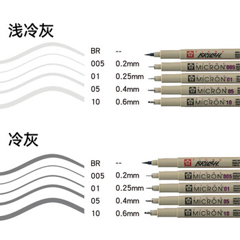 樱花(SAKURA)PIGMAPIGMA针管笔防水勾线笔 日本进口绘图手绘漫画学生设计动漫专用灰色描边笔 005号0.20mm 冷灰