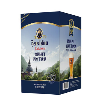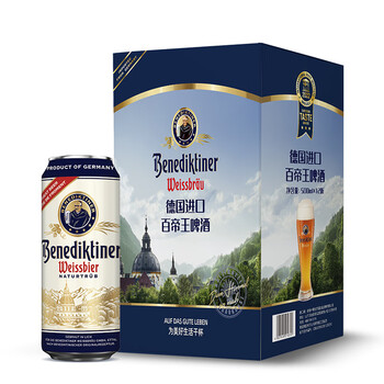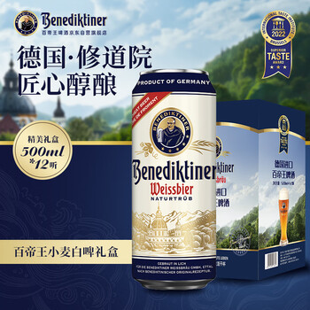百帝王(Benediktiner)【送礼优选】小麦白啤酒500ml*12听礼盒装 德国进口啤酒礼盒