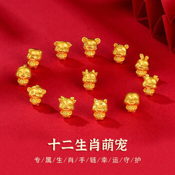 Lossot十二生肖龙本命年手链足金五福龙黄金转运珠手链5D金龙生日礼物