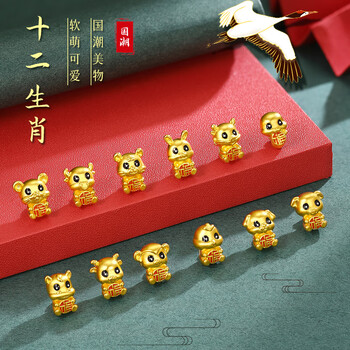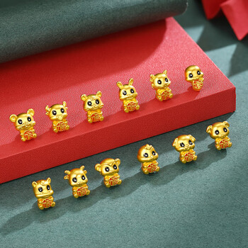 Lossot十二生肖虎本命年手链足金五福虎黄金转运珠手链5D金虎生日礼物