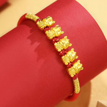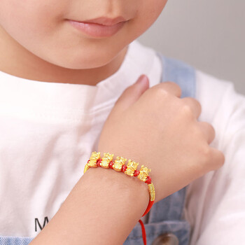 Lossot十二生肖马本命年手链足金五福马黄金转运珠手链5D金马生日礼物