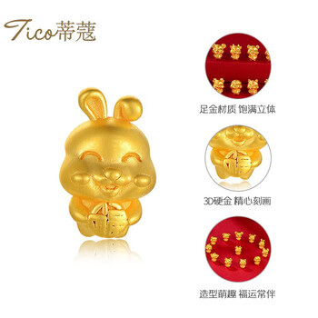 蒂蔻(Tico)十二生肖兔本命年手链足金五福兔黄金转运珠手链红绳生日礼物