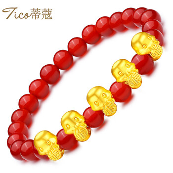 蒂蔻(Tico)生日礼物本命年生肖蛇足金五福蛇黄金转运珠手链女红玛瑙手串金蛇