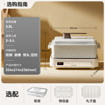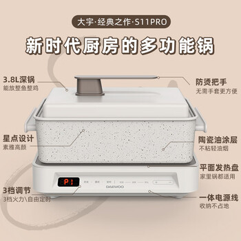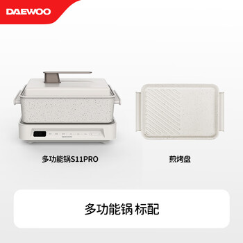 大宇(DAEWOO)多功能锅网红料理锅 家用电火锅电热炒锅电烧烤炉电蒸锅电煮锅不粘送礼S11PRO深锅盘+煎烤盘