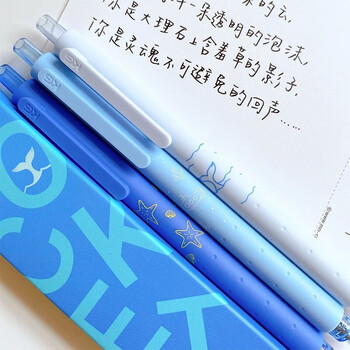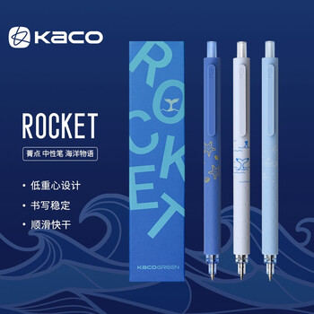 KACO菁点海洋物语按动笔中性笔ins高颜值小众0.5mm子弹头黑色水笔签字笔学生考试刷题笔碳素笔3支K1028