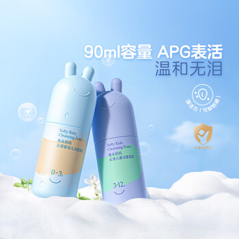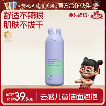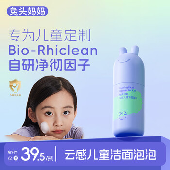 兔头妈妈儿童洗面奶 宝宝洁面乳洁面泡护肤清洁洗脸舒缓卸防晒3-12岁90ml