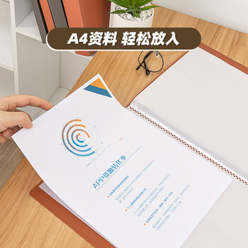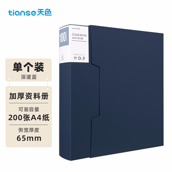 天色 A4/100页大容量资料册插页文件夹 加厚带外壳活页收纳册档案盒试卷收纳活页夹 TS-20010 深邃蓝