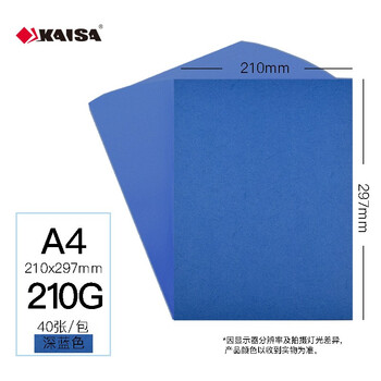 凯萨(KAISA)湖蓝色A4凹凸皮纹纸打印纸纸 210g 40张
