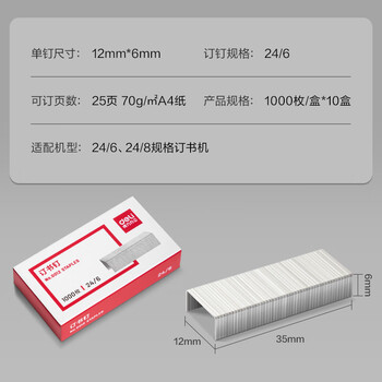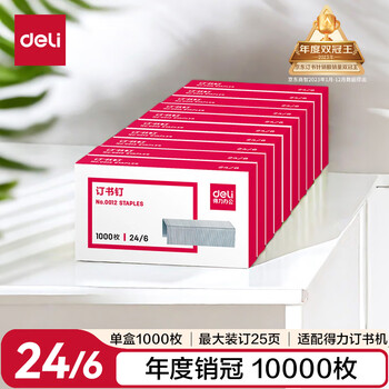 得力(deli)24/6高强度订书钉 12#订书针 1000枚/盒 10盒装 办公用品 可订25页 0012