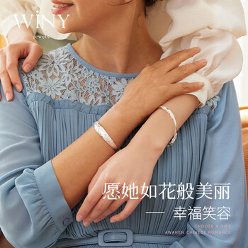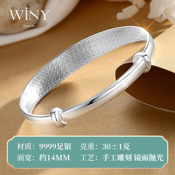 唯一(Winy)银手镯女款足银9999实心镯子老人正品纯银饰品生日礼物送妈妈长辈