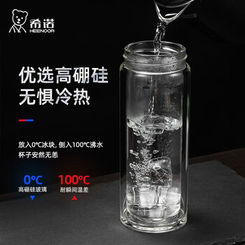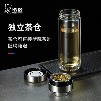 希诺双层玻璃杯男茶水分离杯高档泡茶杯子车载水杯XN-9338本色 290mL