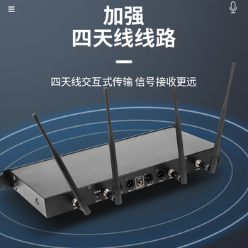话筒底座四个,咪杆四支,主机一台,音频线一条,电源一个,天线四条