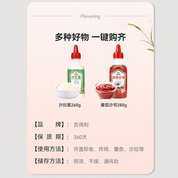 吉得利沙拉酱260g番茄沙司280g 三明治炸鸡薯条汉堡蔬菜水果沙拉酱