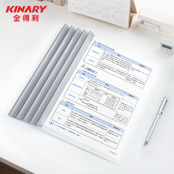金得利 5个装15mm大容量A4透明三角形抽杆夹文件夹拉杆夹学生试卷整理夹 加厚面板简历报告夹资料夹Q311