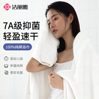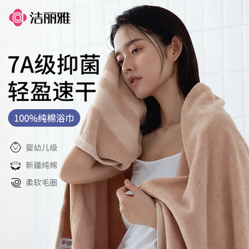 洁丽雅(Grace)7A抗菌大浴巾成人纯棉加大加厚浴巾男女藕色140*70cm430g