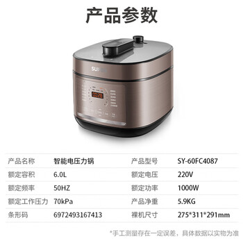 苏泊尔(SUPOR)ZMD安心系列 6L容量 一锅双胆 一键收汁 20分钟快速饭电压力锅SY-60FC4087