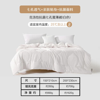水星家纺被子空调被夏凉被抗菌七孔纤维夏被子约1.9斤150*210cm白