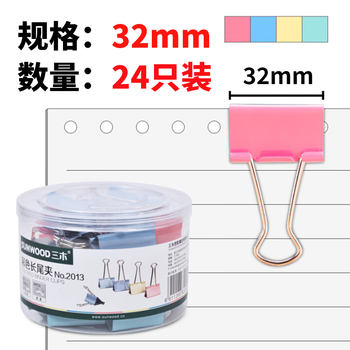 三木(SUNWOOD)32mm彩色长尾夹/金属燕尾夹/票据夹/长尾票夹 办公用品 24只/筒 2013