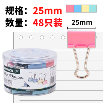 三木(SUNWOOD)25mm彩色长尾夹/金属燕尾夹/票据夹/长尾票夹 办公用品 48只/筒 2014