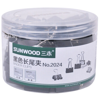 文教文化用品---装订文具---票夹/长尾夹三木(SUNWOOD)黑色25mm筒装长尾夹2024(48只装)