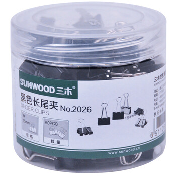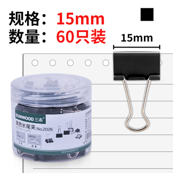 三木(SUNWOOD) 15mm黑色长尾夹/金属燕尾夹/票据夹/长尾票夹 办公用品 60只/筒 2026