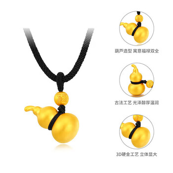梦金园黄金吊坠足金福禄挂坠3D硬金福字葫芦挂坠男女款
