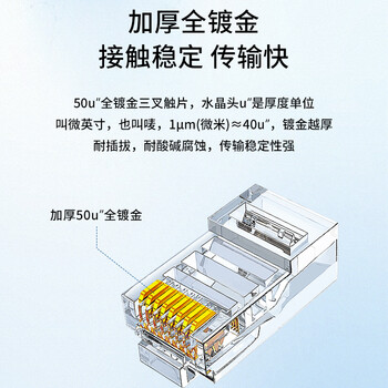 博扬(BOYANG)超五类RJ45水晶头 Cat5e类千兆网线水晶头 工程级非屏蔽连接头(50U镀金)100/盒 BY-RJ45-8P8C5E