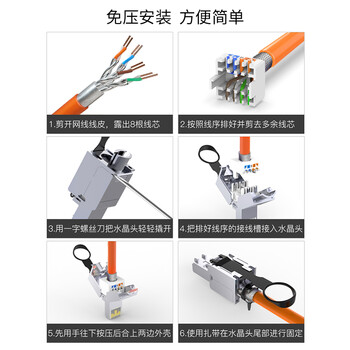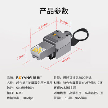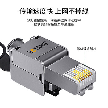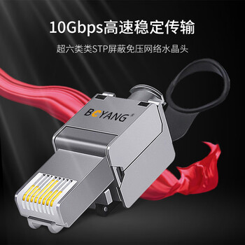 博扬 工程级超六类STP屏蔽免压水晶头 CAT.6A万兆免打网络线接头 10Gbps传输 RJ45服务器模块水晶头BY-10G-6AM*1*合格证*1