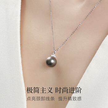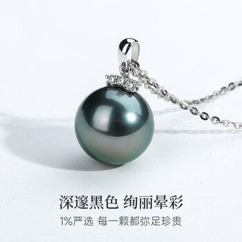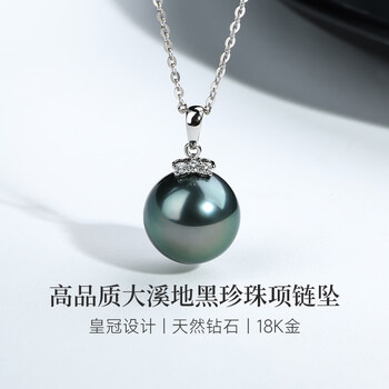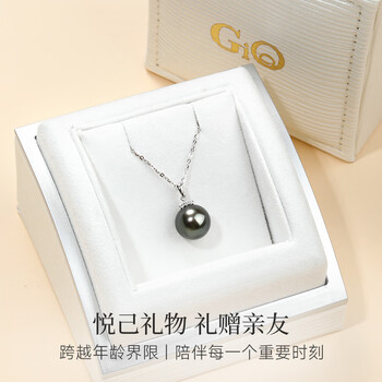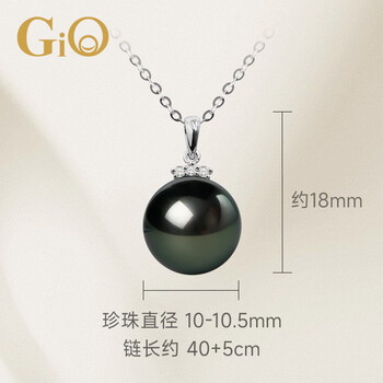 GiO珠宝 大溪地黑珍珠项链女18K金吊坠钻石送女友生日礼物