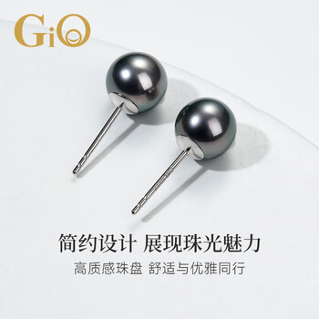 GiO珠宝 大溪地海水黑珍珠耳钉女18K金送女友送老婆生日礼物