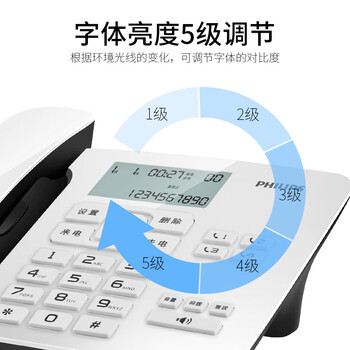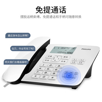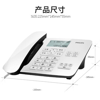 飞利浦(PHILIPS)电话机座机 有线固定电话 办公家用 免电池 双接口 一键拨号 免提通话 来电显示 CORD492 (白色)