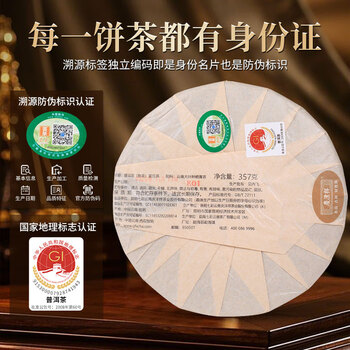 君悦熟茶饼357g×1;红色礼盒×1,手提袋×1