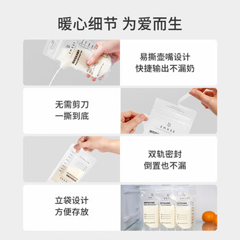 嫚熙(EMXEE)储奶袋一次性母乳装奶壶嘴型储存袋冷藏装奶保鲜防漏 200ml*60枚