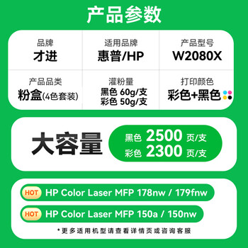 才进适用惠普HP118a硒鼓带芯片彩色178nw 179fnw粉盒150a 150nw m178nw打印机墨盒W2080A碳粉Color Laser MFP