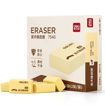 得力(deli)2块黄色绘画 4B200A开学文具考研中考高考美术考试专用橡皮擦 开学