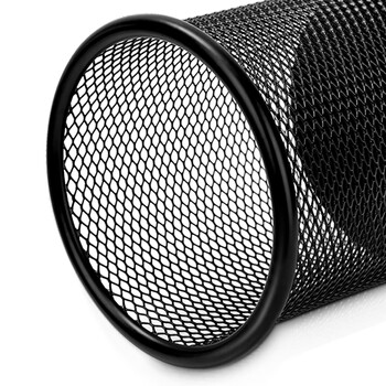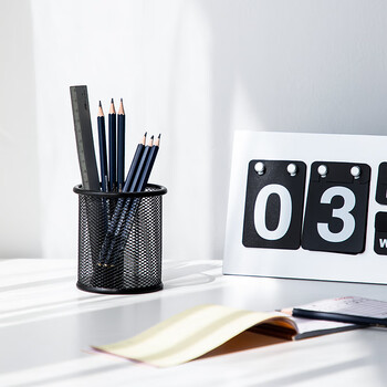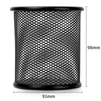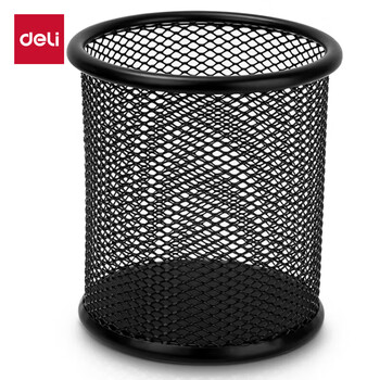 得力(deli)金属网纹圆形笔筒 简约创意桌面收纳盒 办公学习用品 黑色