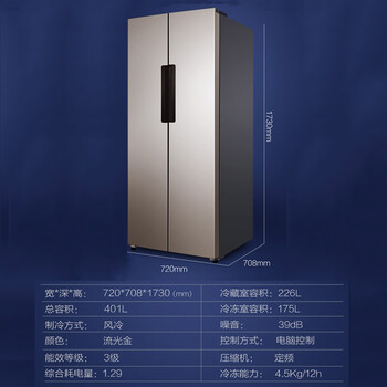 TCL BCD-401W 401升 对开门家用电冰箱 三级能效 流光金