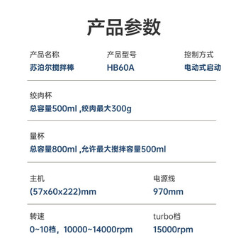 苏泊尔(SUPOR)搅拌棒料理棒小巧家用婴儿米辅食机 打蛋器 手持式榨汁机 料理机HB60A