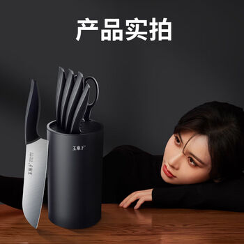 王麻子刀具套装 家用厨具切菜砍骨削皮菜刀剪刀刀具全套组合 随意插可拆卸刀座