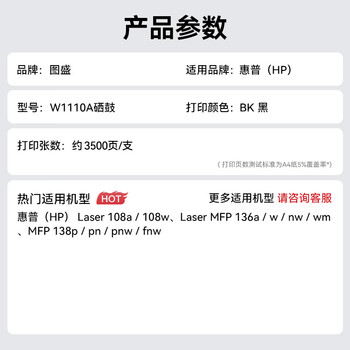 图盛110a硒鼓适用惠普136w硒鼓 HP108w硒鼓 136wm 136nw 136a 108a 138p 138pnw打印机硒鼓墨粉盒W1110A硒鼓