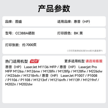 图盛388a硒鼓适用惠普M1136硒鼓HP M126a M126nw P1108 P1007 P1106 M128fn M1136mfp打印机墨盒88a硒鼓CC388A