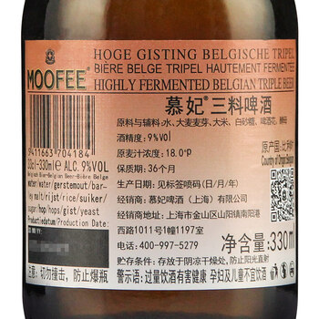 慕妃(MOOFEE)啤酒 比利时原装进口 精酿 啤酒 慕妃三料 烈性啤酒 330mL*6瓶