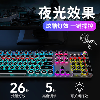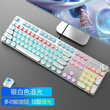 前行者(EWEADN)TK100朋克机械键盘鼠标套装电竞游戏有线台式电脑笔记本键鼠办公复古外设吃鸡104键 白色混光青轴