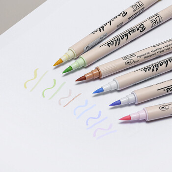 吴竹(KURETAKE)日本进口同色深浅双色刷头软头笔防水水彩手账彩绘6色浅色套装MS-7700/6VPA水彩笔