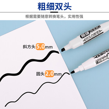 金万年双头白板笔可擦粗细笔画两头大容量办公教学培训会议白板展示 黑色10支/盒G-0601-001