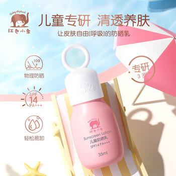 红色小象儿童防晒霜35ml SPF14 PA+++ 宝宝户外物理防晒隔离紫外线