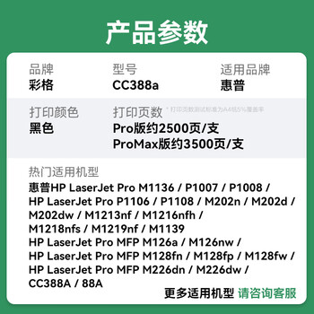 彩格适用惠普m1136硒鼓388a硒鼓hp m126a/nw cc388a p1108 p1106 P1007 1008 m226dw/dn m1213nf m1216打印机墨盒